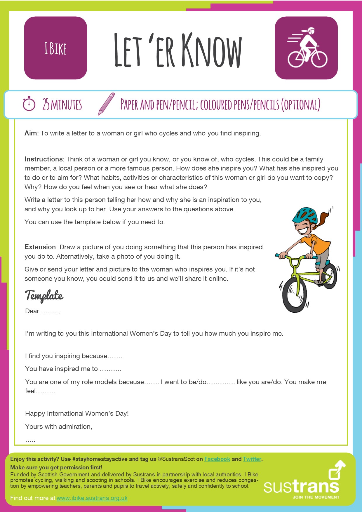 Before you move on to some activities, we have a clip that we hope will inspire you this International Women’s Day. You can also check out our And She Cycles materials - find out more about our national campaign aiming to address the barriers faced by teenage girls and young women when cycling.